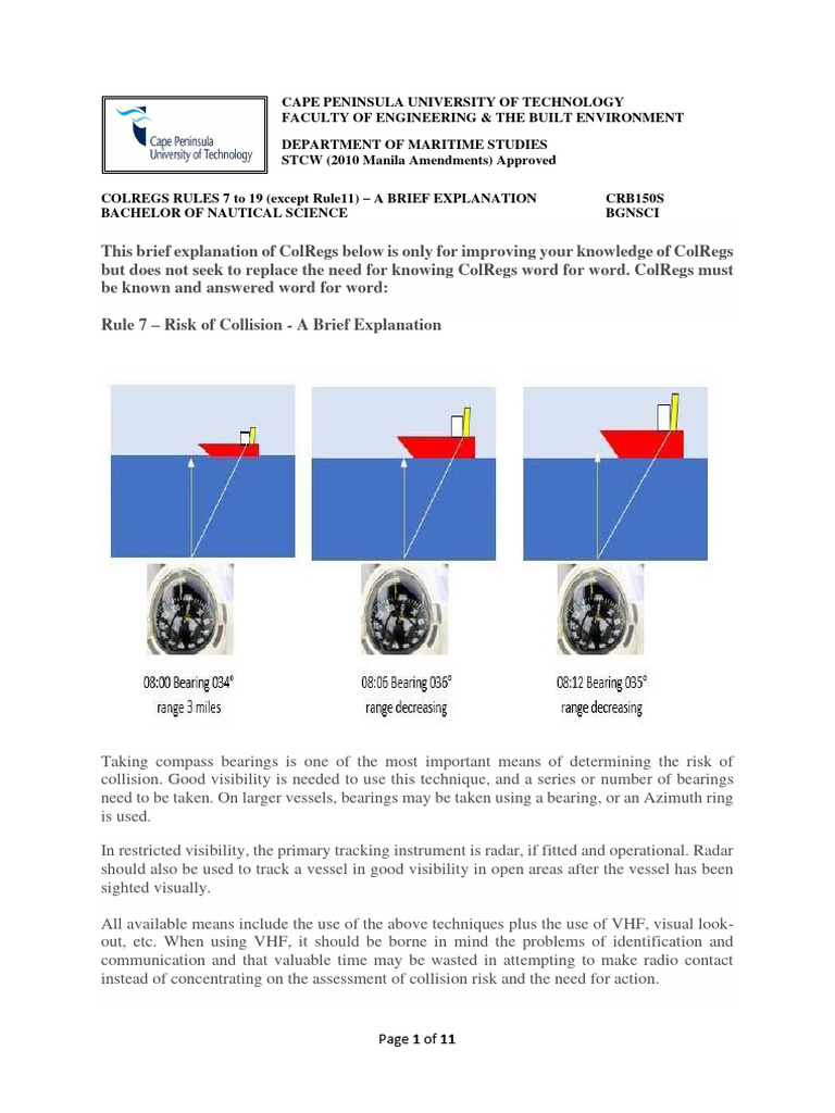 A Brief Explanation ON Colregs Rules 7 TO 8 - CAPE PENINSULA UNIVERSITY ...