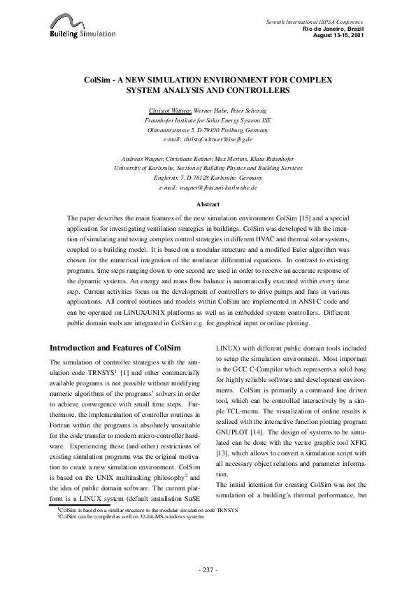 (PDF) ColSim - A NEW SIMULATION ENVIRONMENT FOR COMPLEX SYSTEM ANALYSIS ...