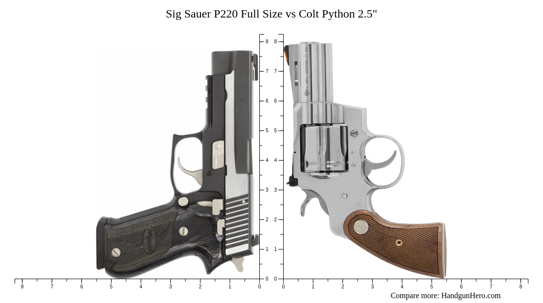 Sig Sauer P220 Full Size vs Colt Python 2.5" size comparison | Handgun Hero