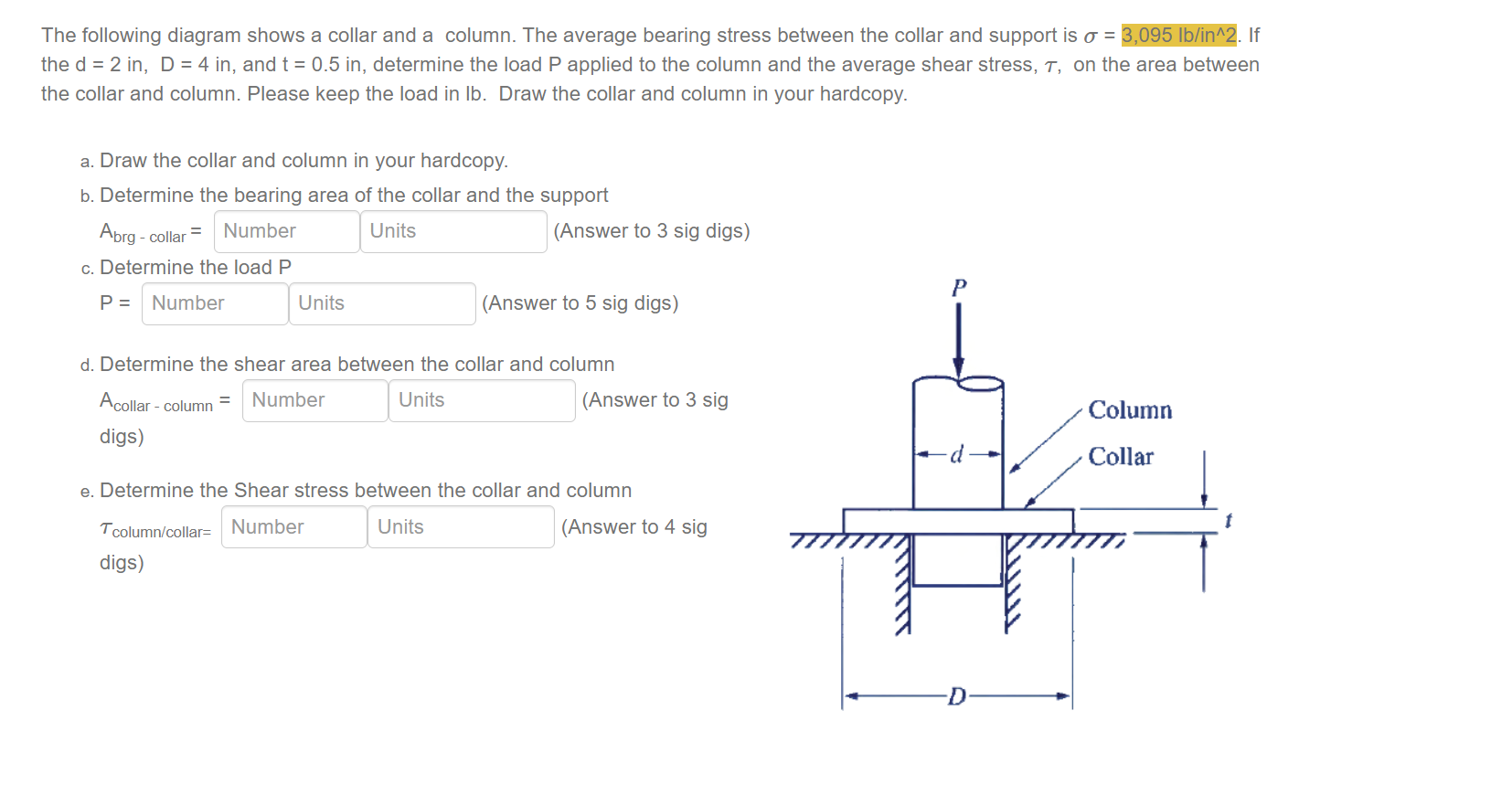 [Solved]: The following diagram shows a collar and a column.