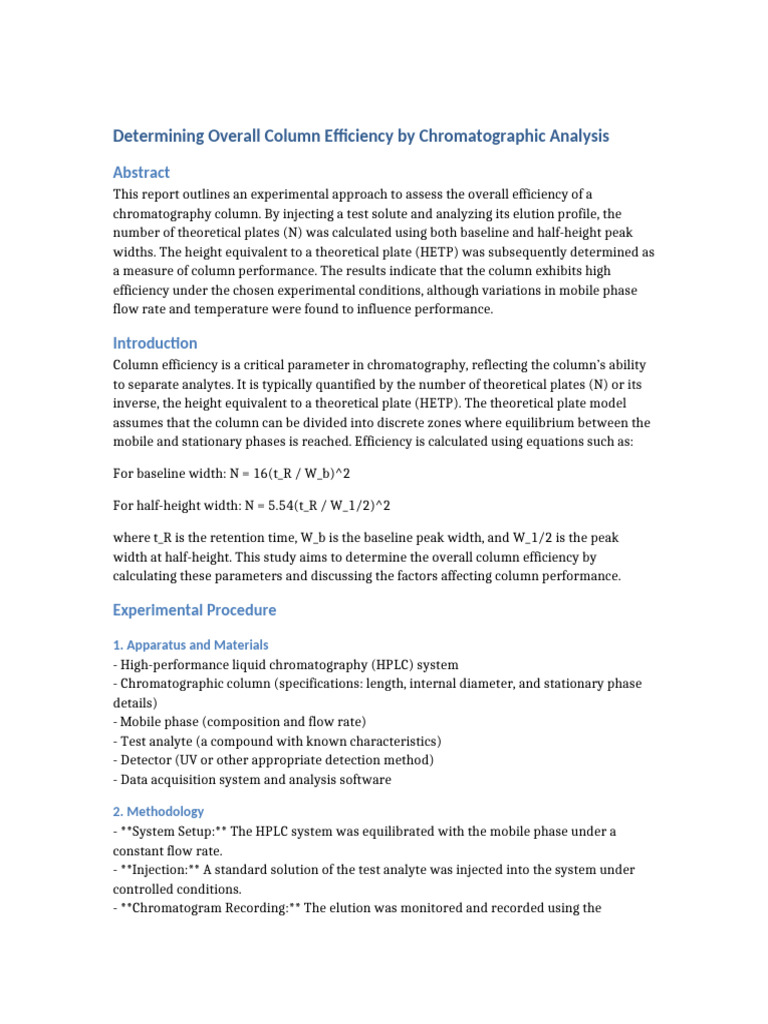 Column Efficiency Lab Report | PDF | Chromatography | High Performance ...