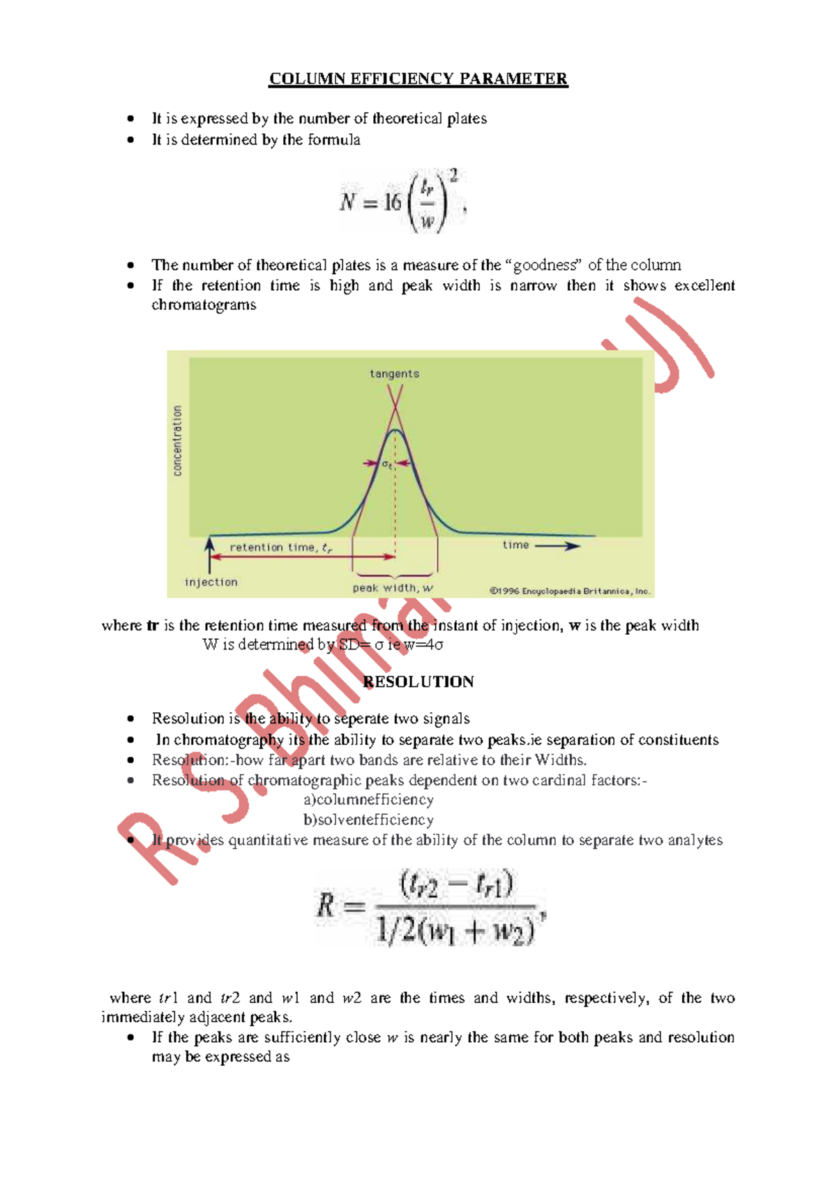 Column Efficiency Parameters in Chromatography Analysis - Studocu