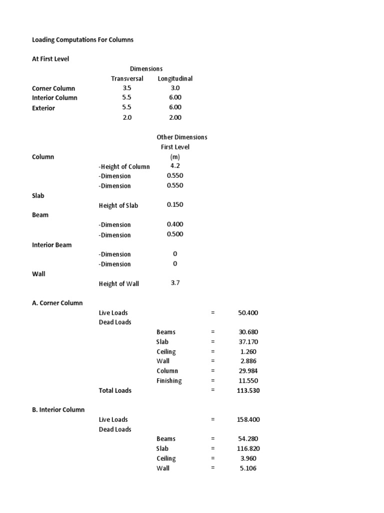 Loading Computations For Columns at First Level | Download Free PDF ...