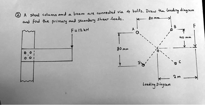 A steel column and a beam are connected via 4 bolts. Draw the loading ...