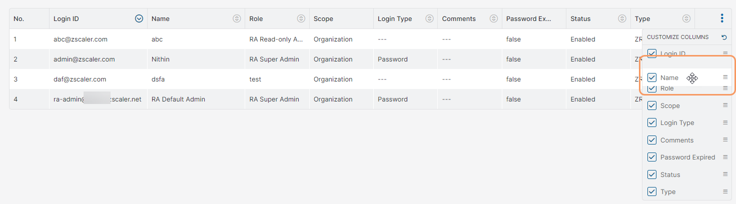 Manage table columns – Support Center