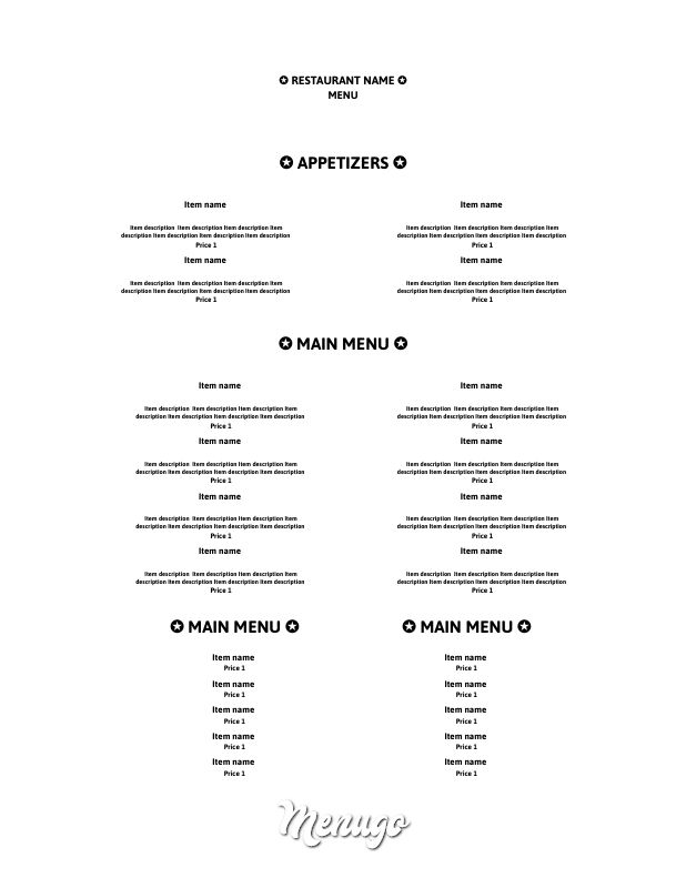 Cafe Menu Template - Two Column Menu With Items and Descriptions ...