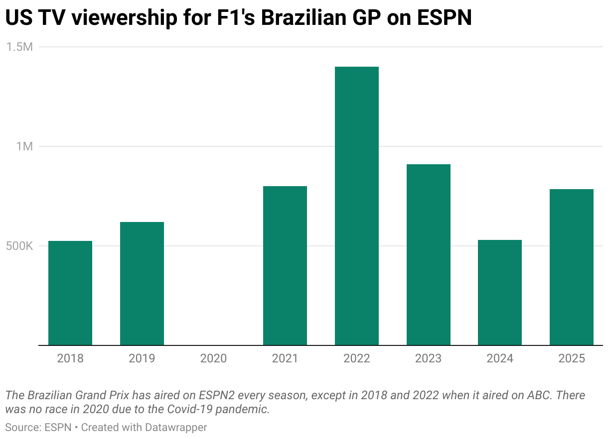 F1 Brazil GP averages 784k viewers on ESPN2 - BlackBook Motorsport