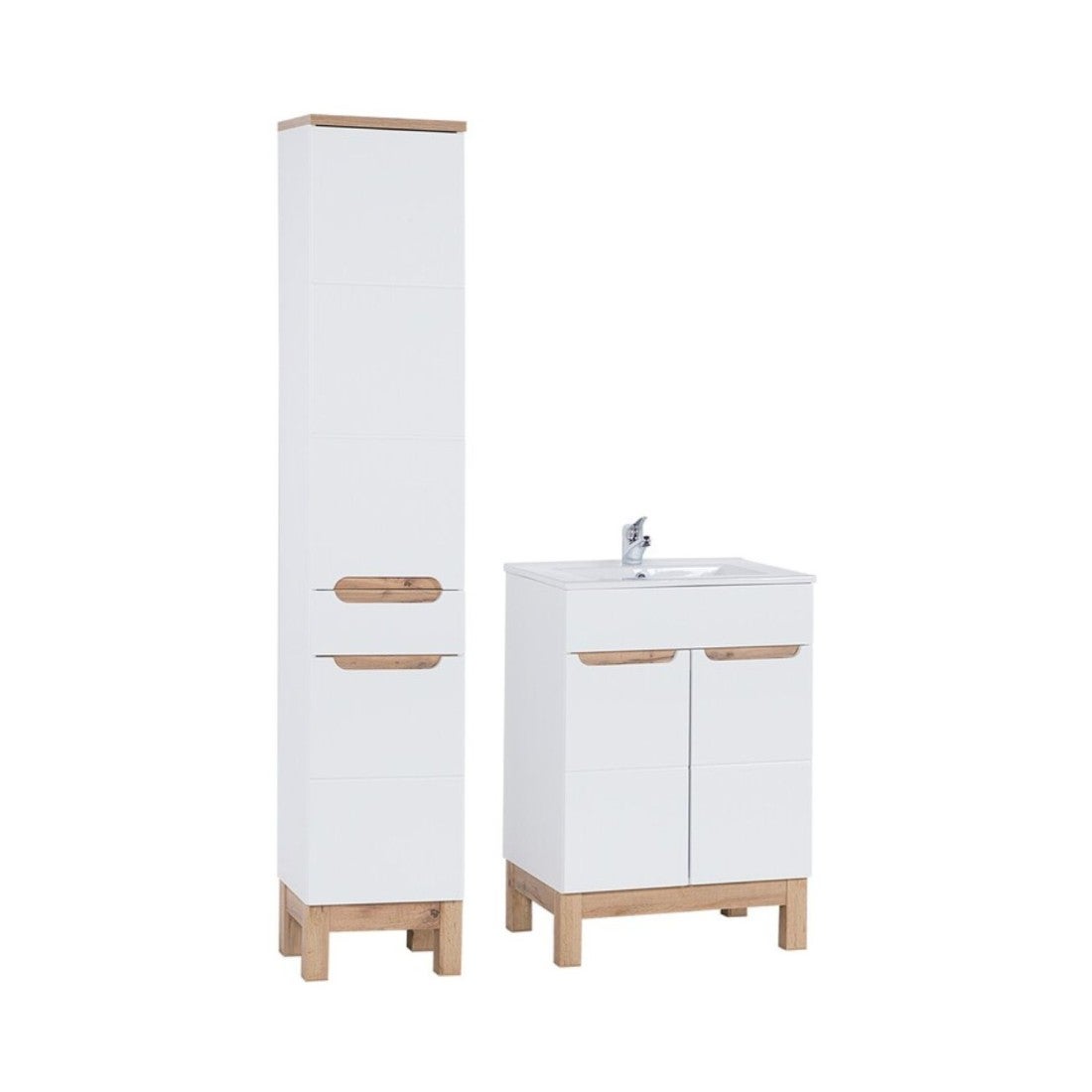 Conjunto VANO roble claro 80cm: mueble bajo lavabo con cajones ...