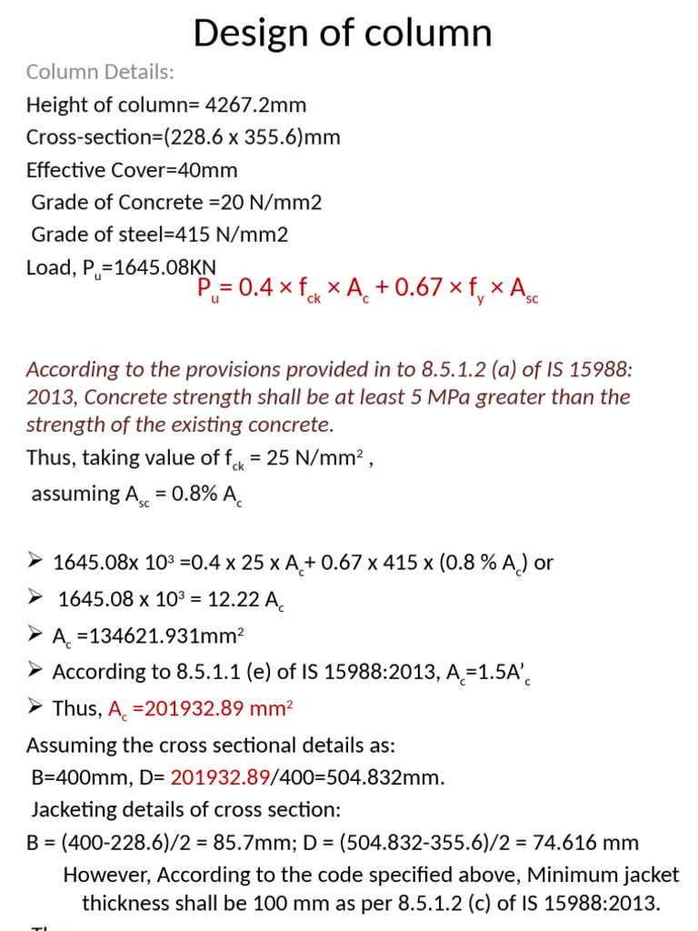 Column retrofit detail - Structure analysis and design - Studocu