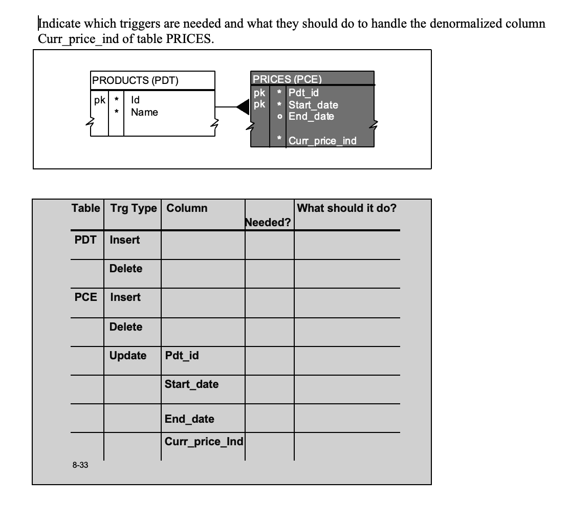 Solved Indicate which triggers are needed and what they | Chegg.com
