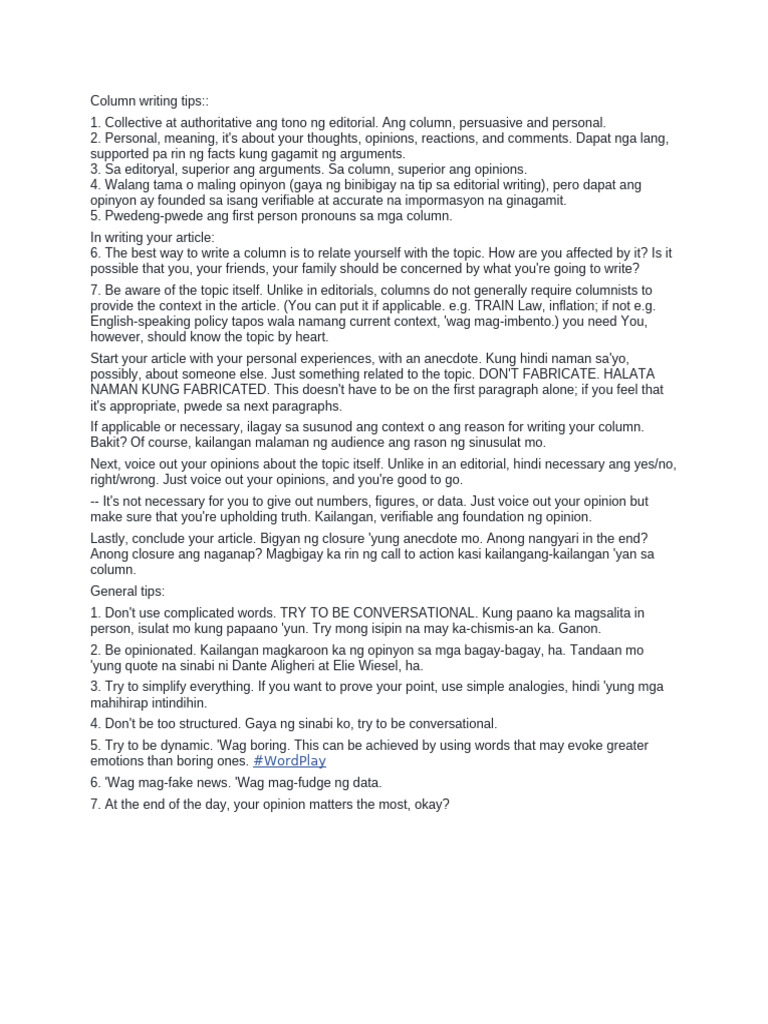 Column Writing Tips | PDF