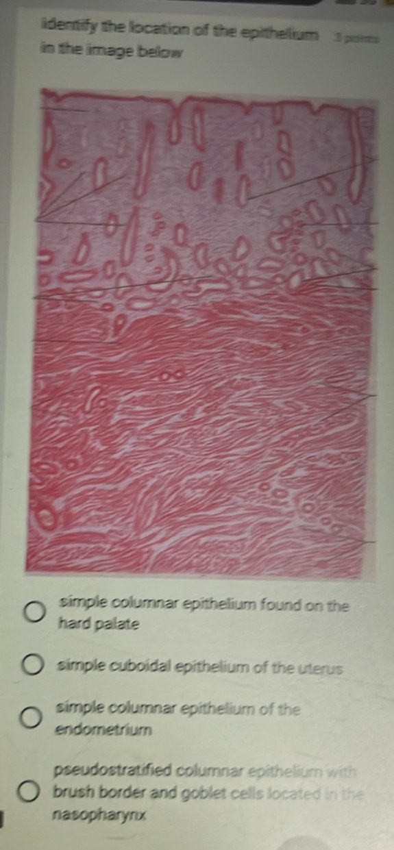 Solved: identify the location of the epithelium 3 poim in the image ...