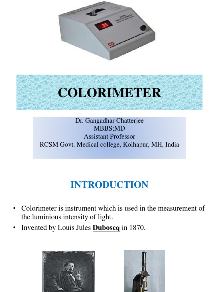Colorimeter: Dr. Gangadhar Chatterjee Mbbs MD Assistant Professor RCSM ...