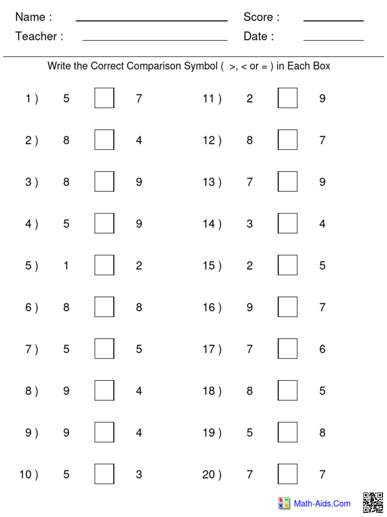Math Comparison Symbols Worksheet | PDF | Games & Activities | Computers