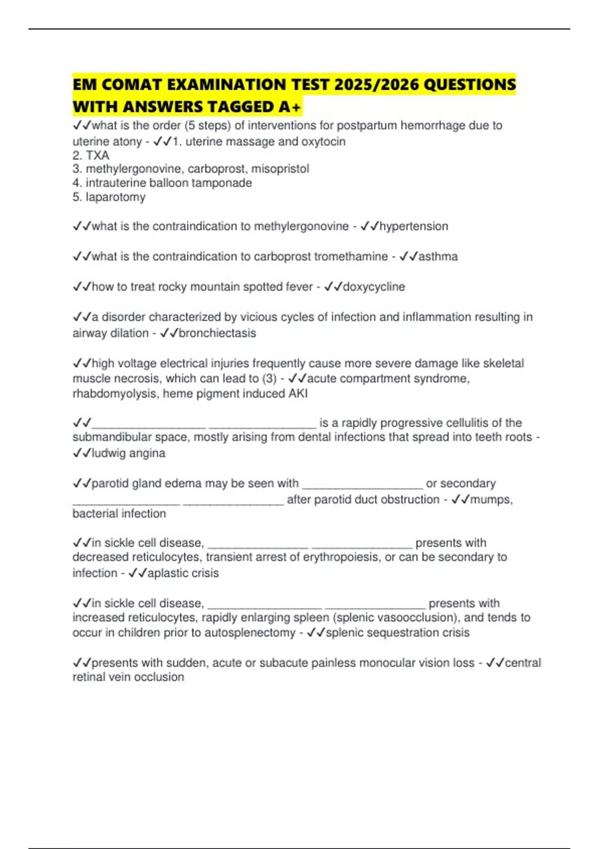 EM COMAT EXAMINATION TEST 2025/2026 QUESTIONS WITH ANSWERS TAGGED A+ ...