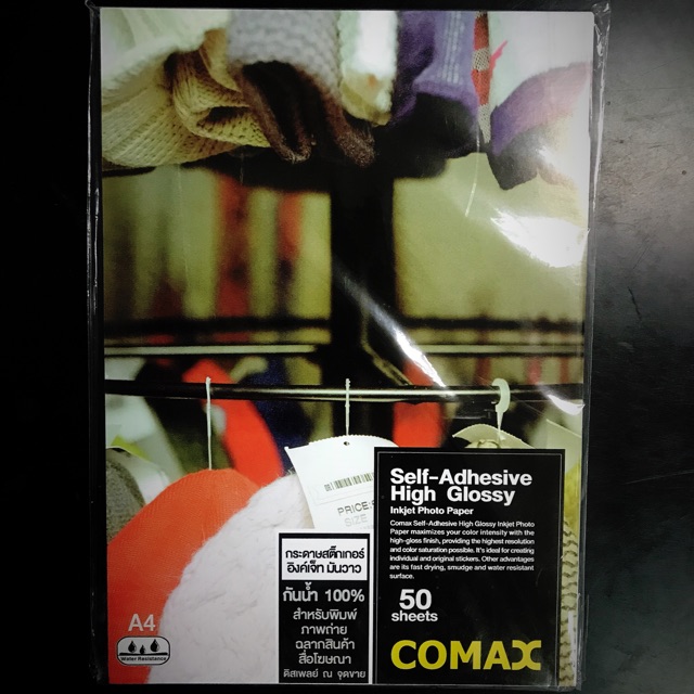 COMAX STICKER กระดาษสติ๊กเกอร์ อิงค์เจ็ท กันน้ำ A4 ยี่ห้อ :โคแมกซ์ ...