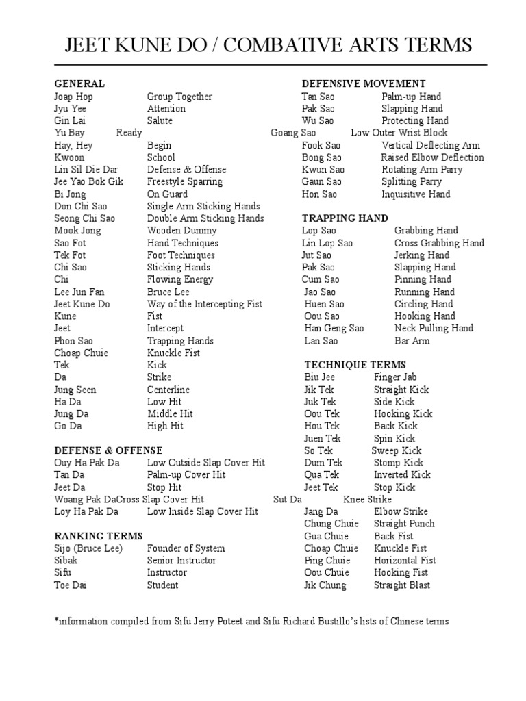 Jeet Kune Do Combative Arts Terms | PDF | Language Arts & Discipline