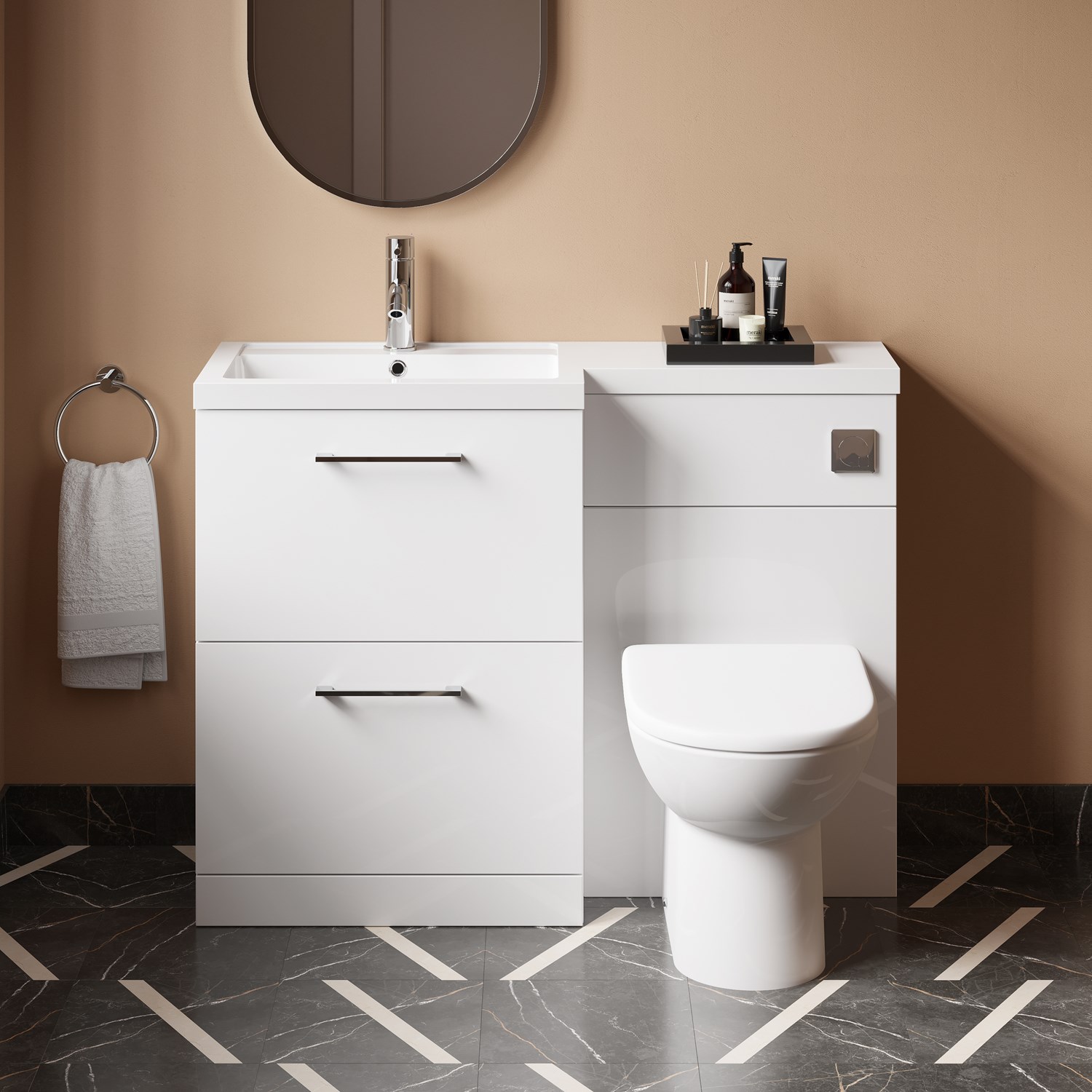 Erin 1100mm Gloss White Combination Bathroom 2 Drawer Sink & Toilet ...