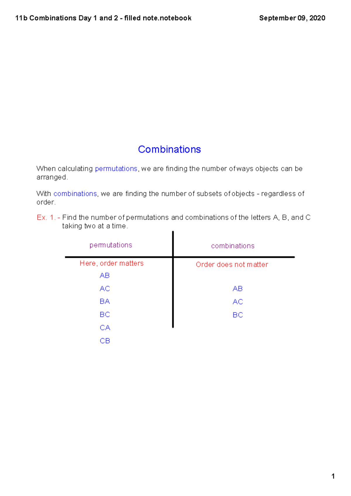 11b Combinations Day 1 of 2 - filled note 1 - Combinations When ...