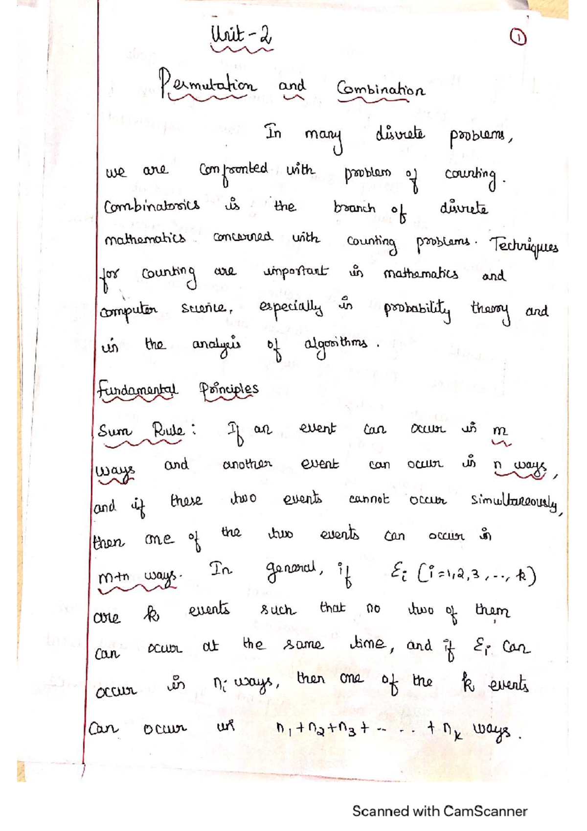 Handwritten notes of Permutations and Combinations - IIT JEE - Stuvia US