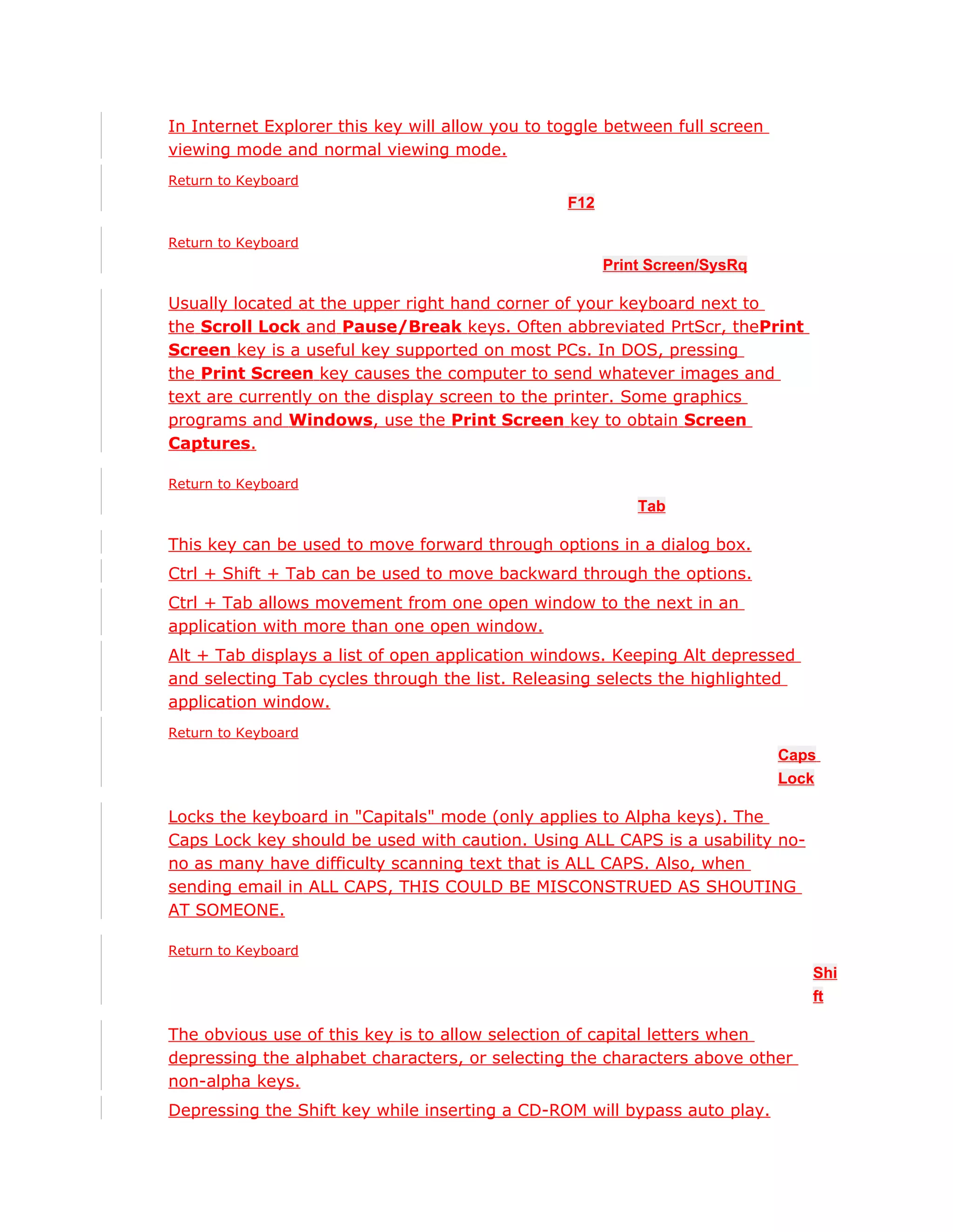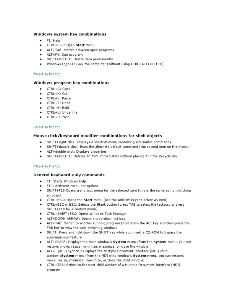 Shortcut Keys.docx - Windows system key combinations Help F1 CTRL ESC ...