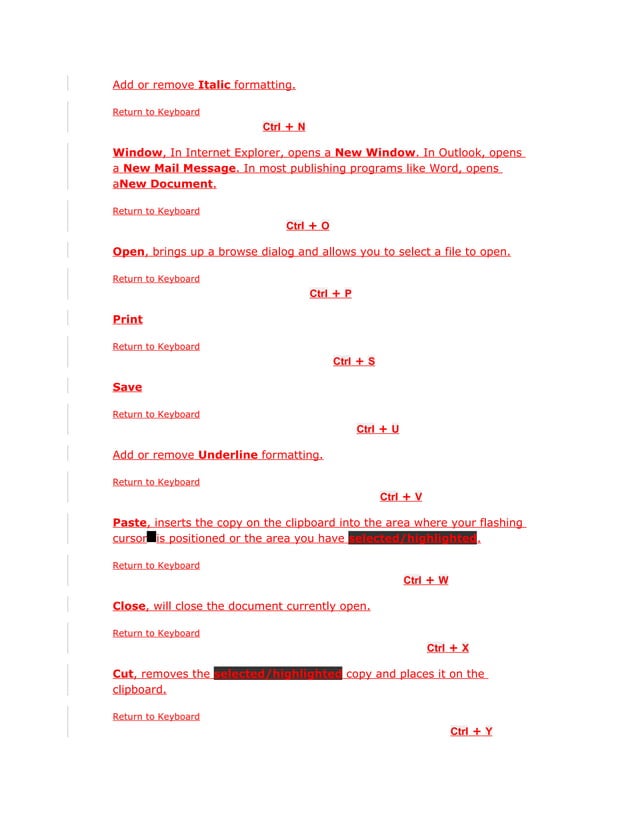 Key Combinations | PDF | Microsoft Word | Microsoft Excel