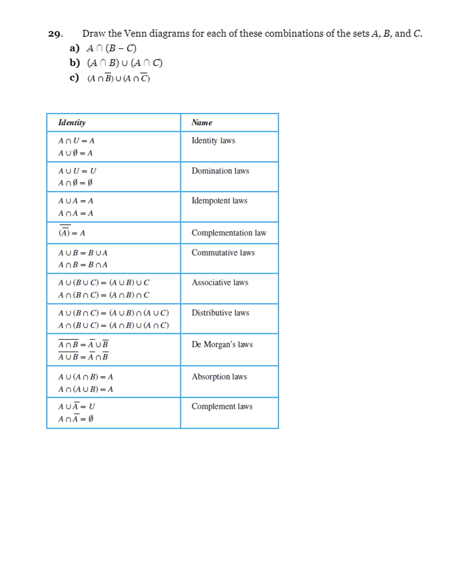 Solved 29. Draw the Venn diagrams for each of these | Chegg.com