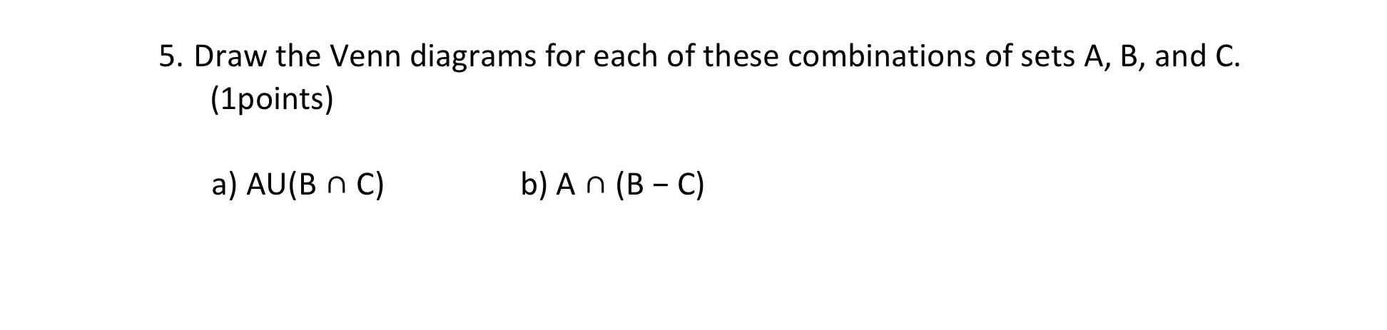 Solved 5. Draw the Venn diagrams for each of these | Chegg.com