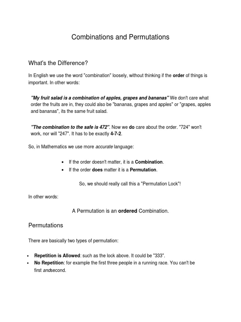 Permutations and Combinations Explained | PDF | Combinatorics ...