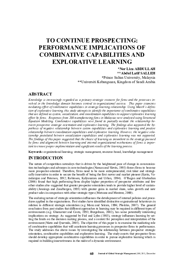 (PDF) To continue prospecting: Performance implications of combinative ...