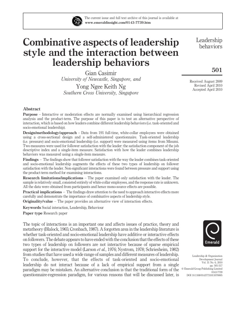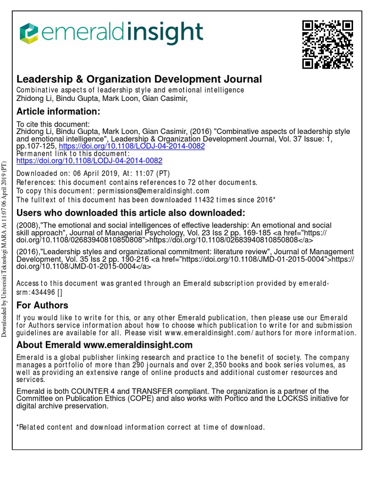 Combinative Aspects of Leadership Style and Emotional Intelligence | PDF