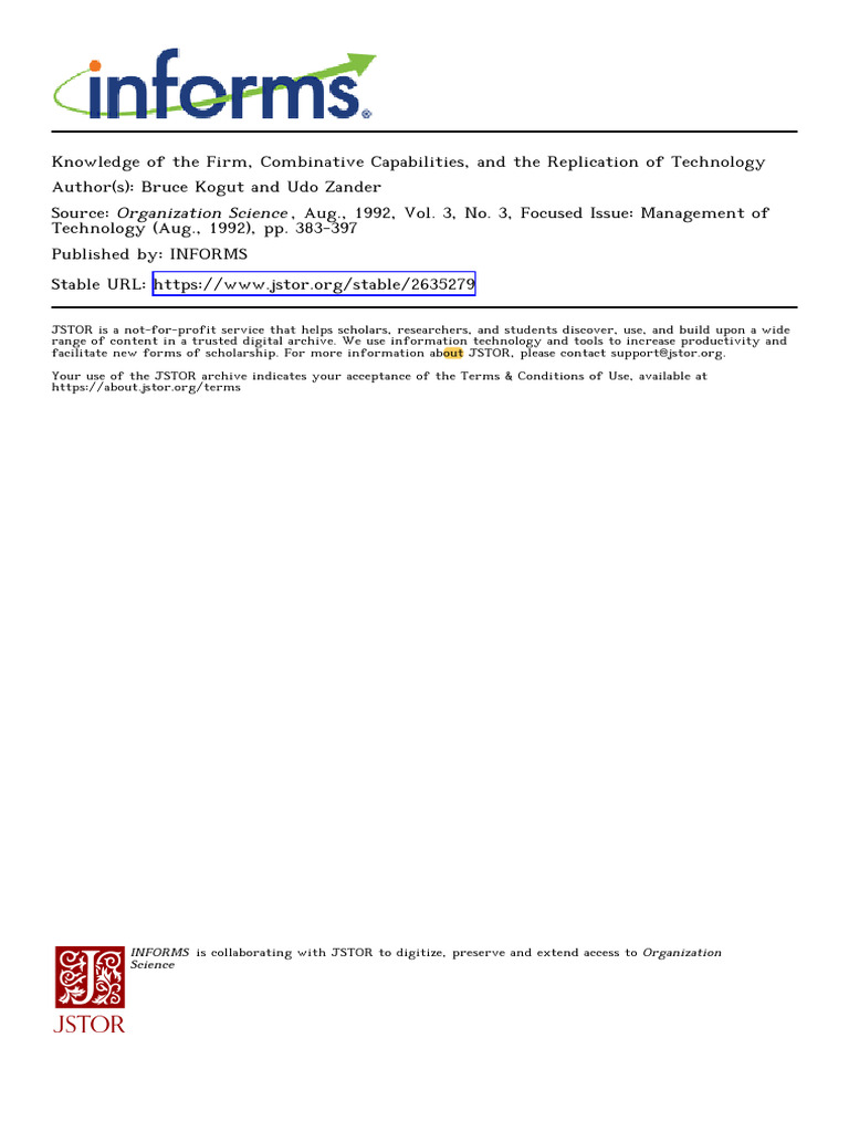 Kogut - Knowledge of The Firm, Combinative Capabilities, and The ...