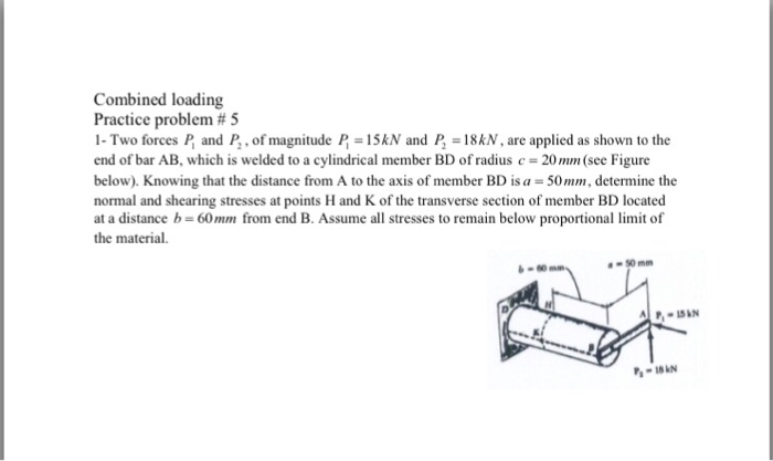 Solved Combined loading Practice problem # 5 1- Two forces | Chegg.com