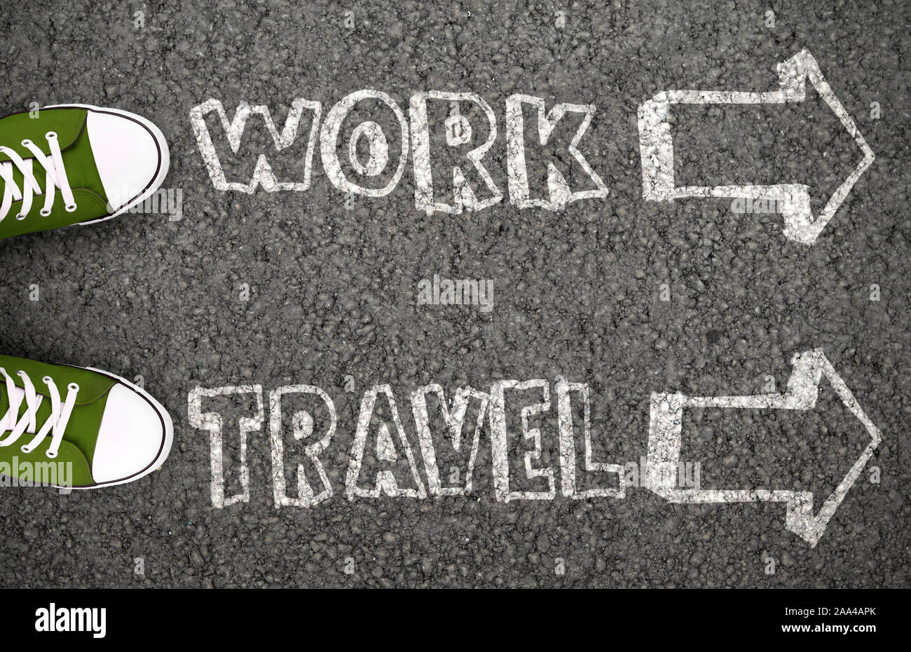 Man combining work and travel, chalk drawing Stock Photo - Alamy