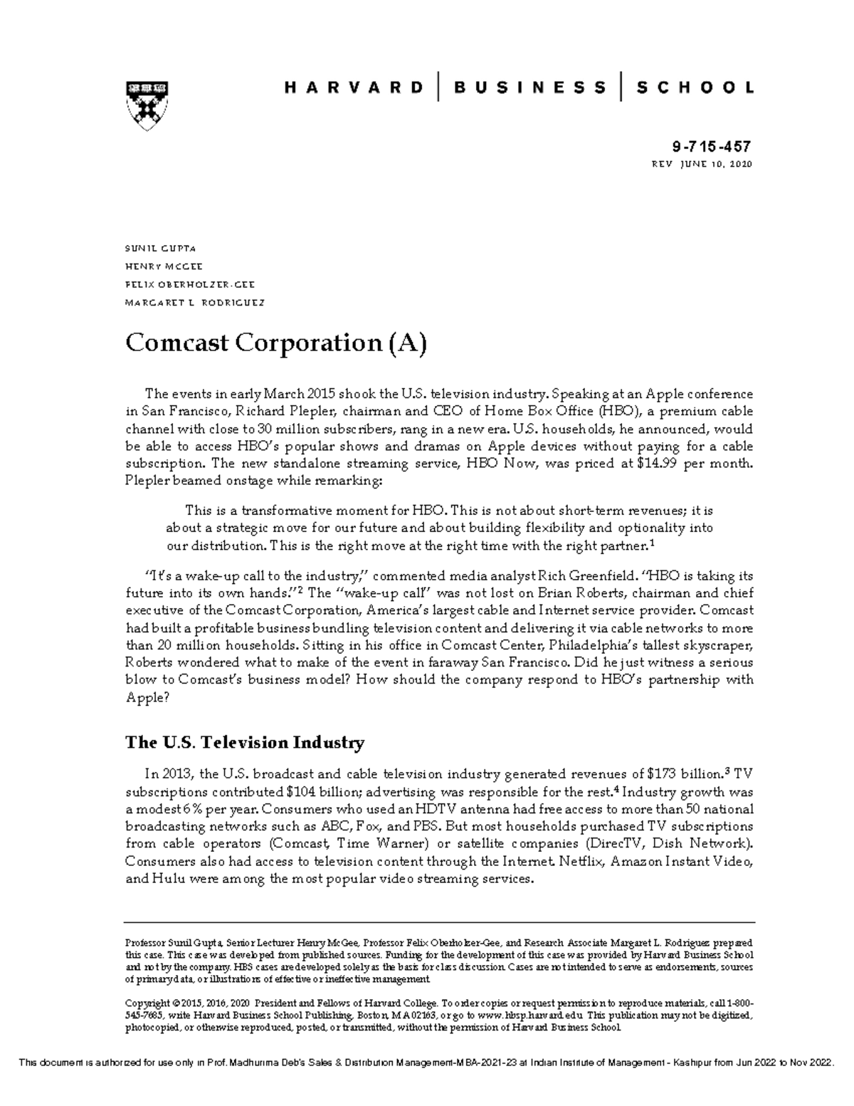 Comcast Case - Hello - 9 1 5 5 7 REV: JUNE 10, 2020 SUNIL GUPTA HENRY ...