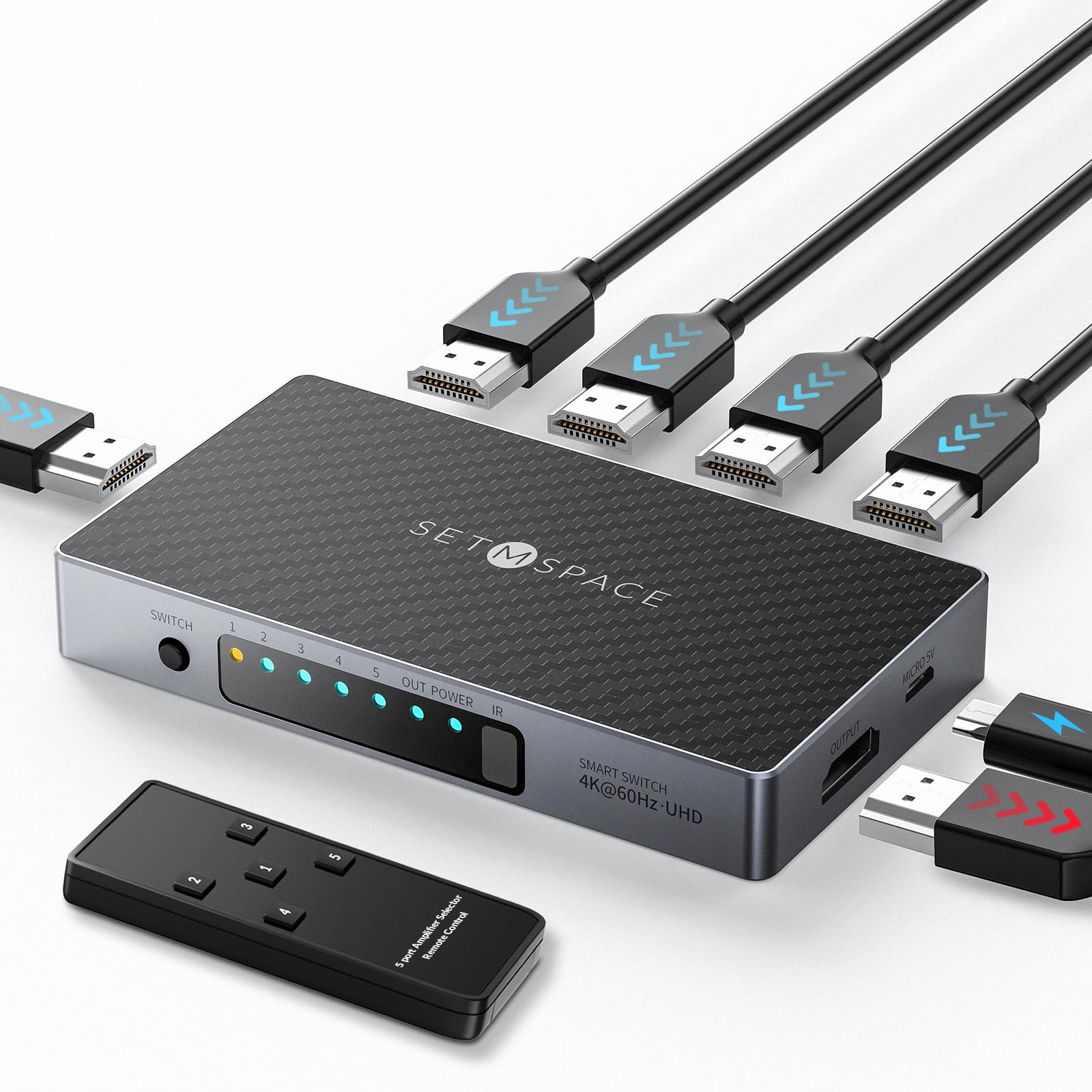 Amazon.com: HDMI Switch, Durable SETMSPACE HDMI Switcher 5 in 1 Out ...