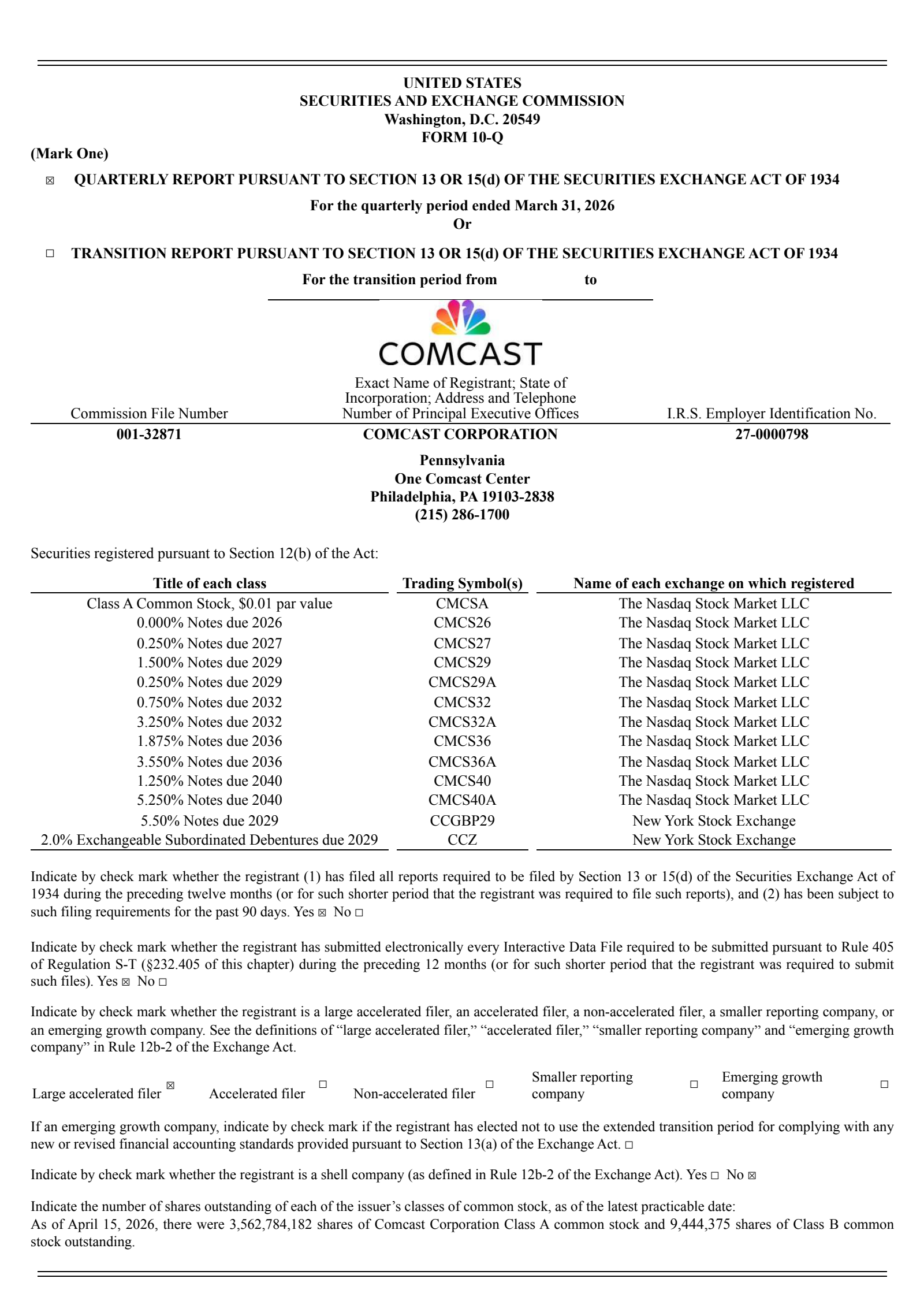 CMCSA Q1 2026 Earnings Report on 4/23/2026
