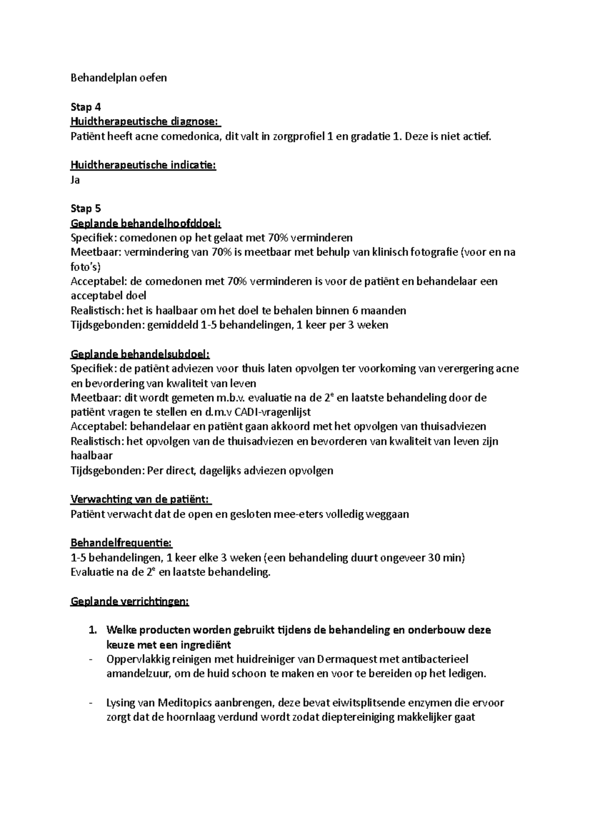 Behandelplan acne comedonica - Behandelplan oefen Stap 4 ...