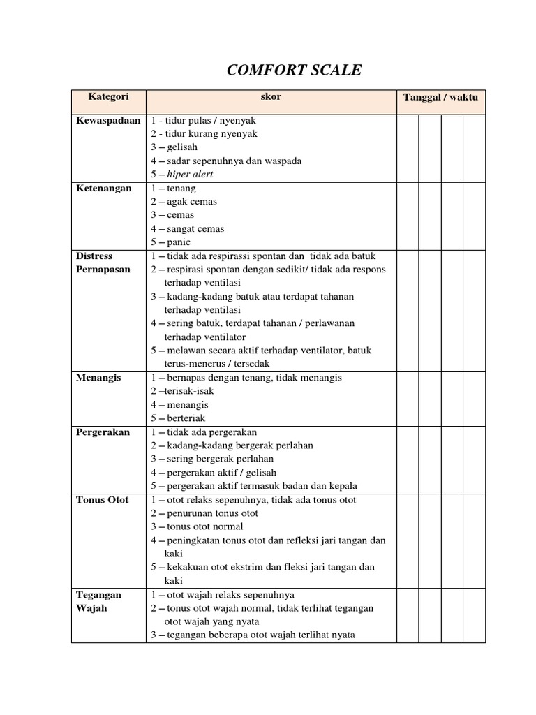 Penilaian Skala Nyeri dengan Comfort Scale | PERAWAT PICU