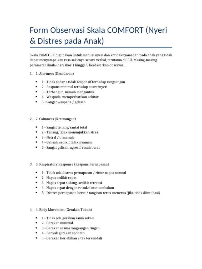 Form Observasi COMFORT Scale Lengkap | PDF