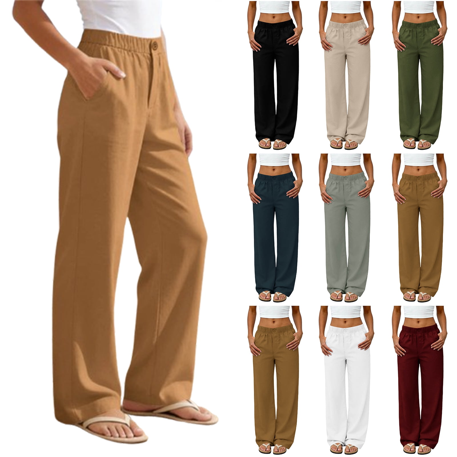 Cargo Pants Women, Cotton Linen Wide Leg Cropped Pants With Pockets ...