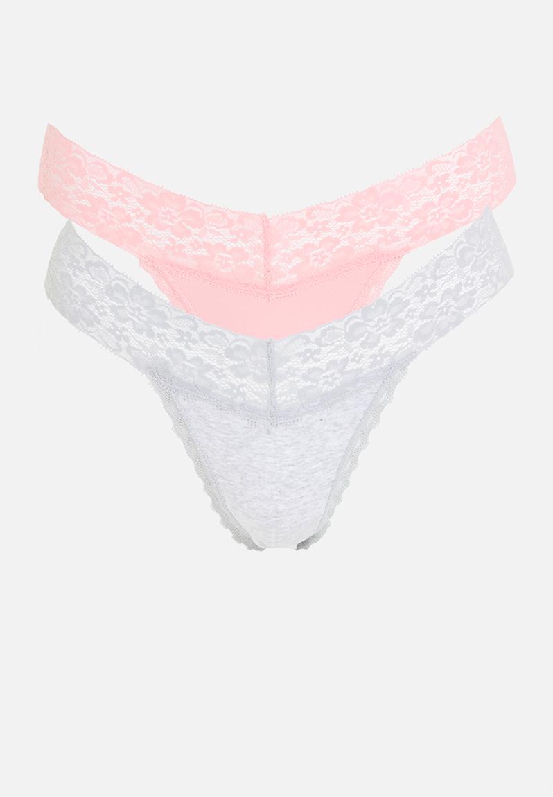 Everyday Lace Comfy G String 2Pk - Grey Marle/Pink Blossom Cotton On ...