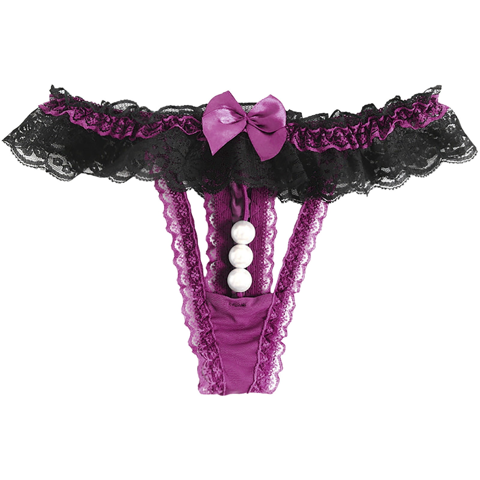 Brglopf Floral Lace G-string Thong for Women Bow-Knot Pearl Ball Comfy ...