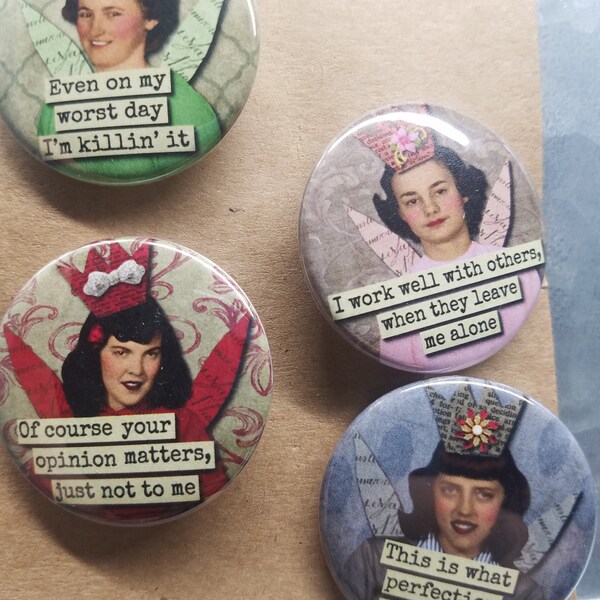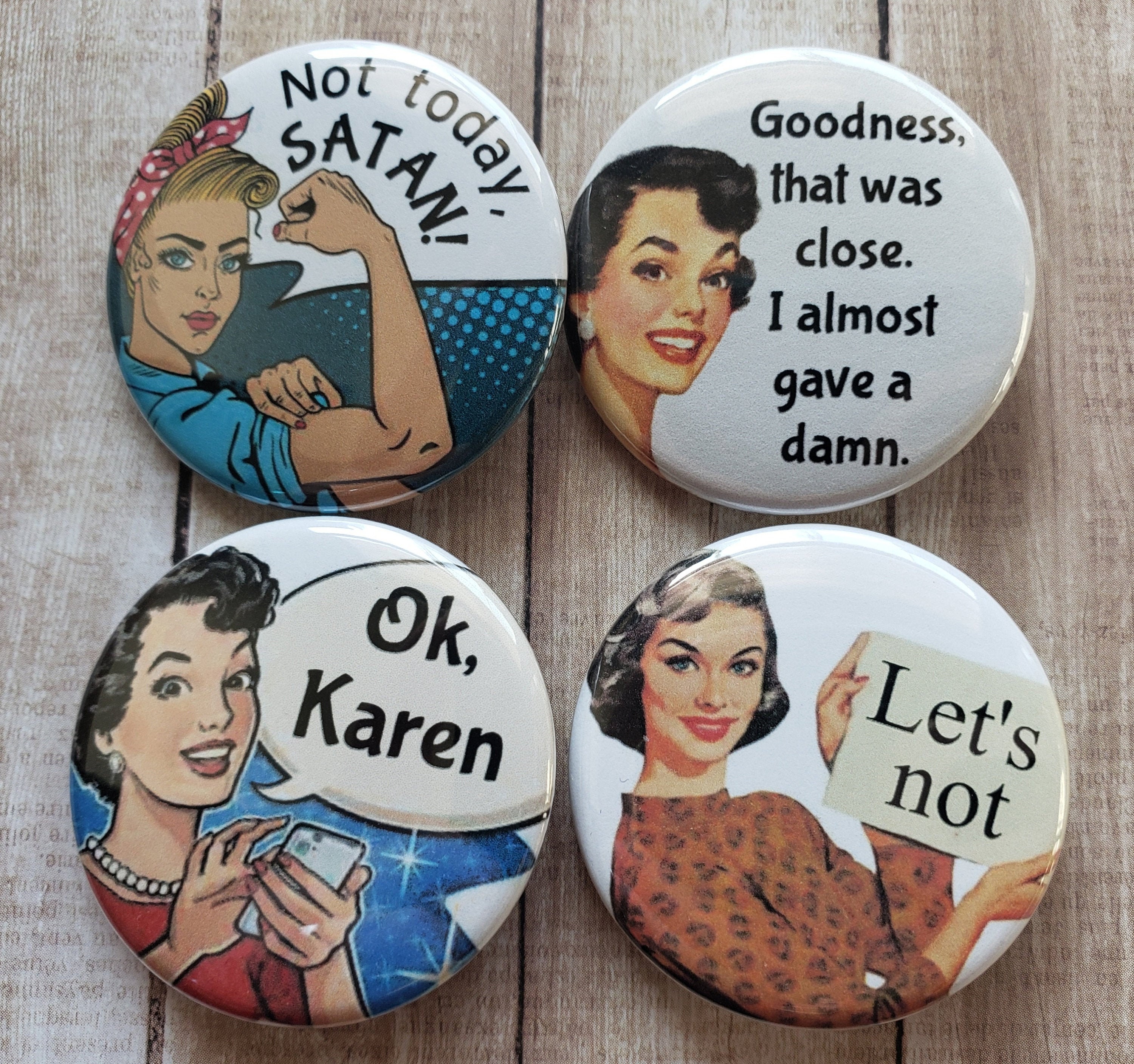 Set of 4 Retro/funny Women 1.5 Inch Button Magnets or Pins | Etsy
