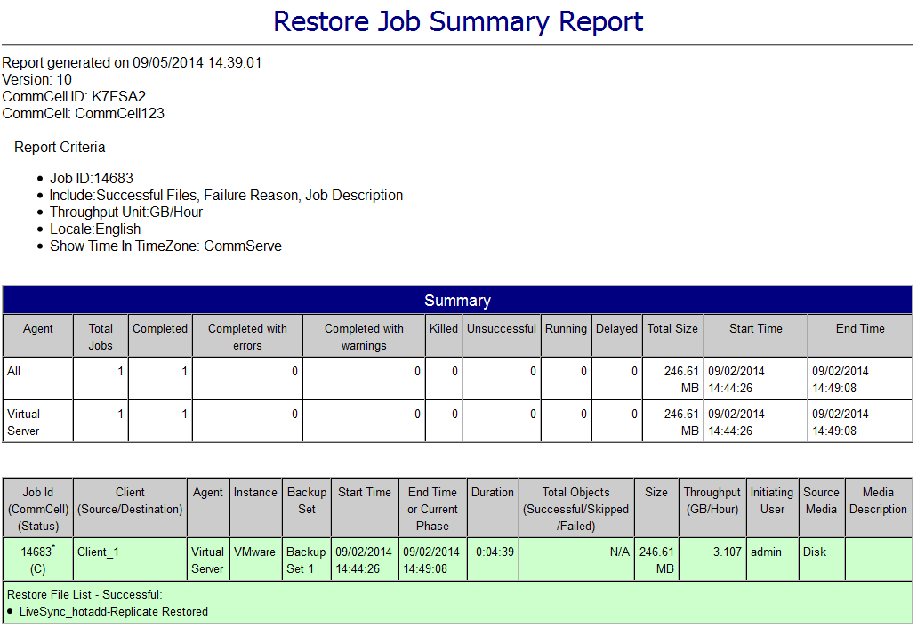 Viewing a List of Restored Virtual Machines in the Restore Job Summary ...