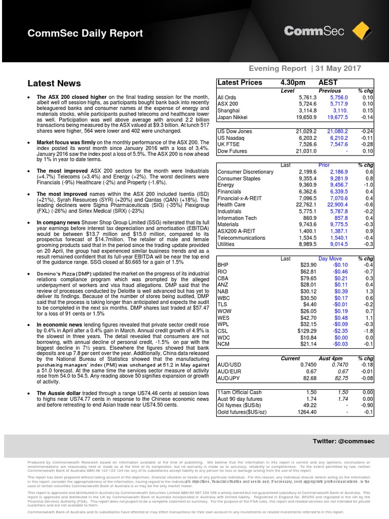 CommSec Closing Report-31 May 17 | PDF | Financial Services Authority ...