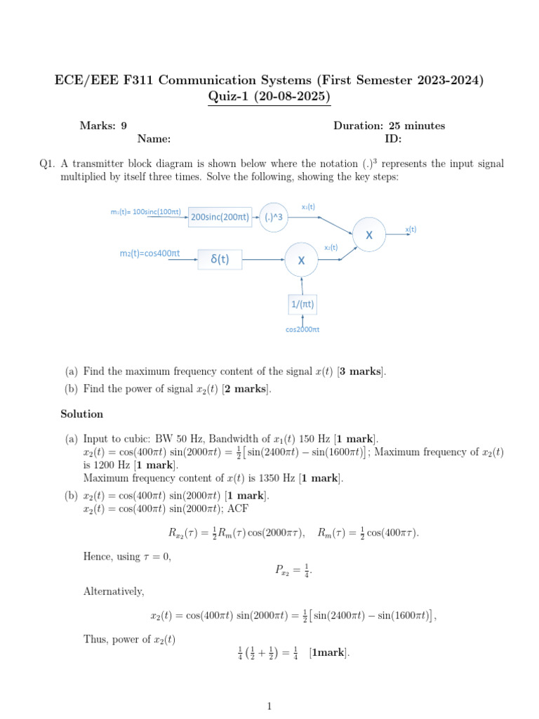 Spring 2020 - CommSys - Midterm Solution Key | PDF | Frequency ...
