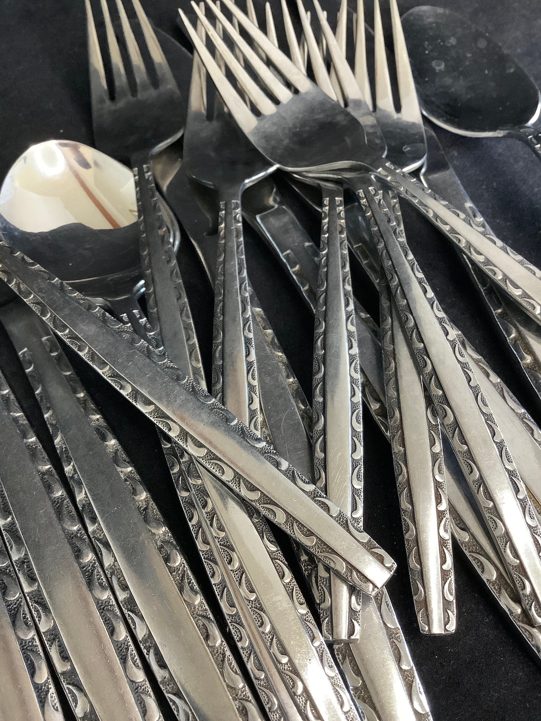 Luxury INS174 Black Comma Pattern Trim Stainless Flatware Vintage Mid ...