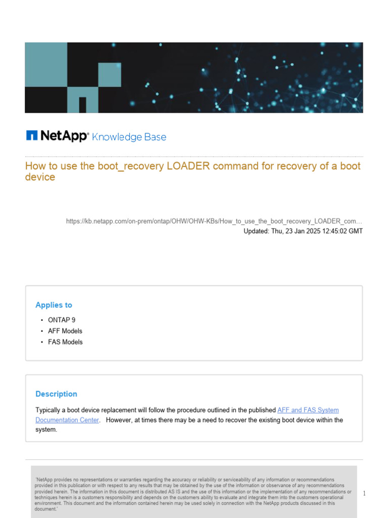 How To Use The Boot - Recovery LOADER Command For Recovery of A Boot ...