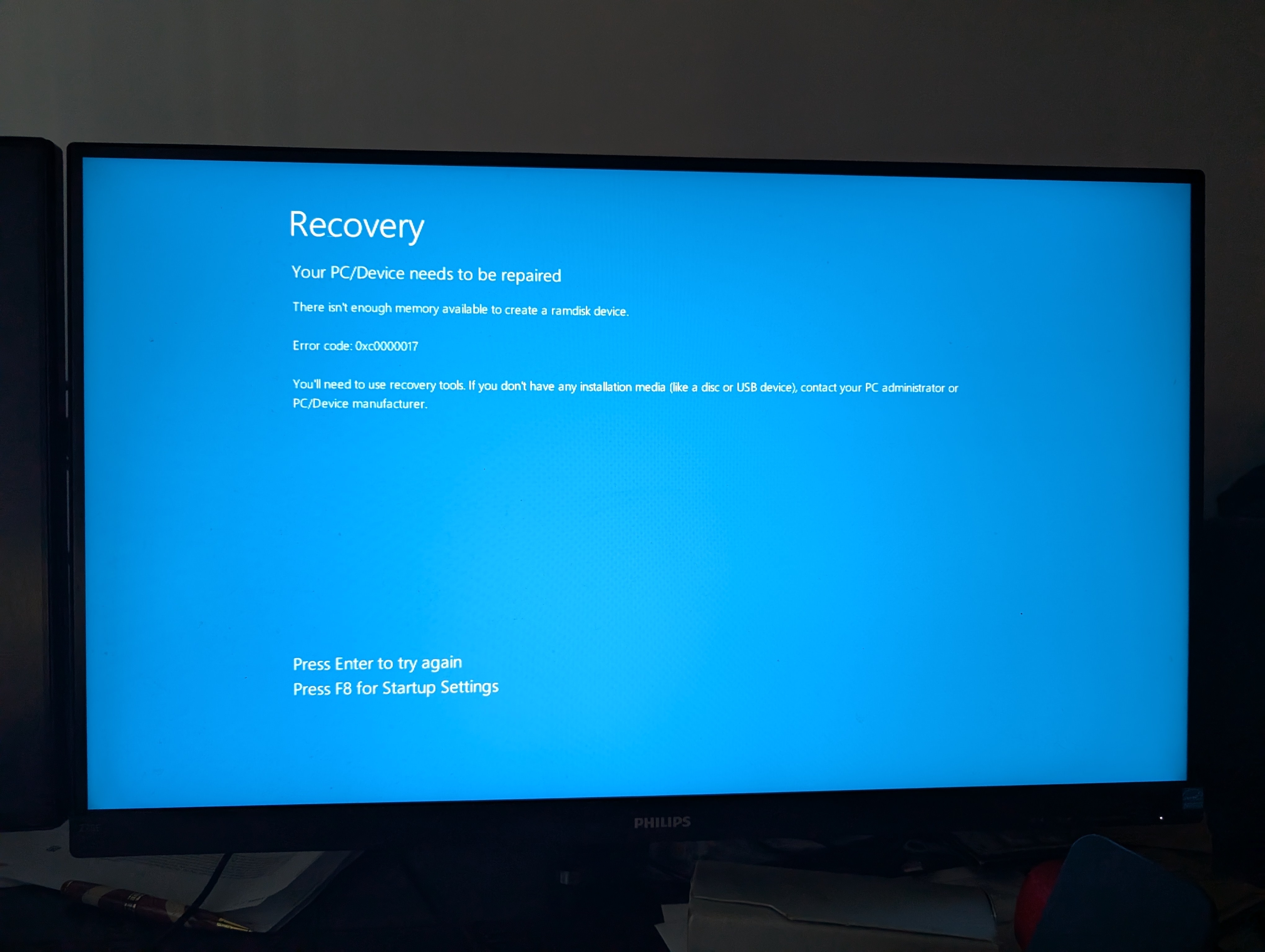 Cannot boot into Windows Recovery Environment